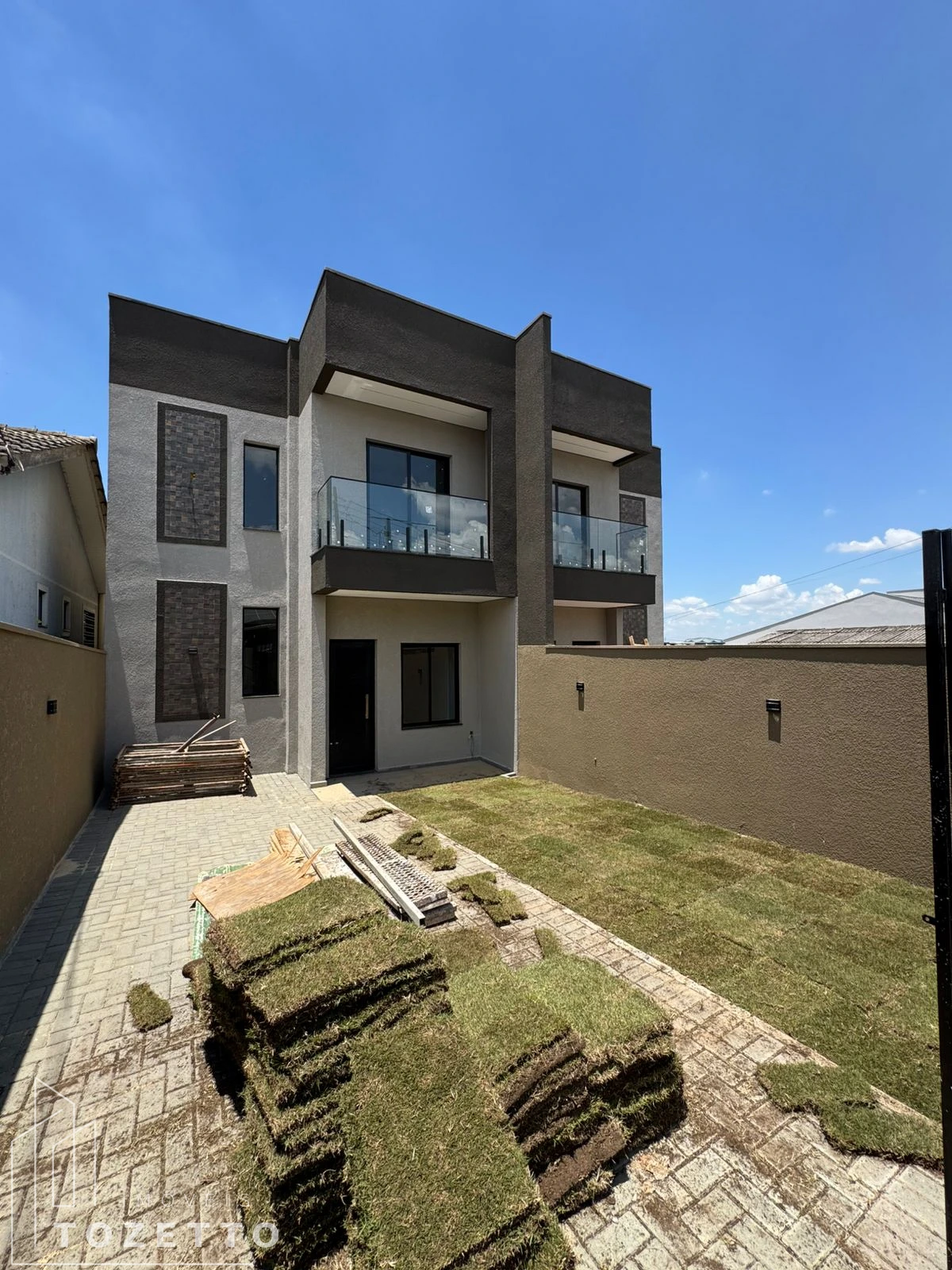 TÉRREO:Vaga para 2 veículos descobertos/ Lavabo/ Sala de estar/ Sala de jantar/ Cozinha/ Lavanderia/ Espaço nos fundos com gramado – ideal para lazer e pets