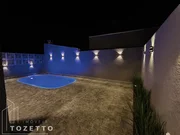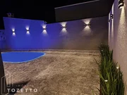 Com área de 90m², possuem 3 amplos dormitórios, sendo um suíte com preparação pra ar condicionado, banheiro social, sala com pé direito de 4,5m² e preparação para ar condicionado, cozinha com preparação para ilha, área de serviço, passagem lateral com acesso ao terreno dos fundos contando com churrasqueira e piscina, além de uma garagem para dois veículos dependendo do modelo com um lindo pergolado o que facilita posteriormente a cobertura. Terreno com 210 m².