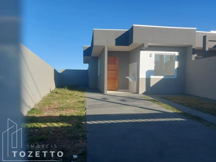 Possui área de 55m² e está disposta em 2 amplos dormitórios, sala e cozinha em conceito aberto, banheiro social, área de serviço, amplo terreno nos fundos e garagem. Toda em laje, fachada moderna em platibanda, tudo de primeira qualidade.