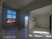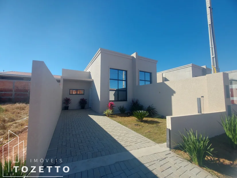 Casa com 2 suítes, 1 lavabo (bem privativo quando se recebe visita hein), sala com pé direito alto, cozinha privativa, área de serviço, espaço de terreno os fundos e garagem. Acabamento de primeira qualidade, piso revestido em porcelanato, gesso e sancas, nicho no box do banheiro, lindo jardim frontal.